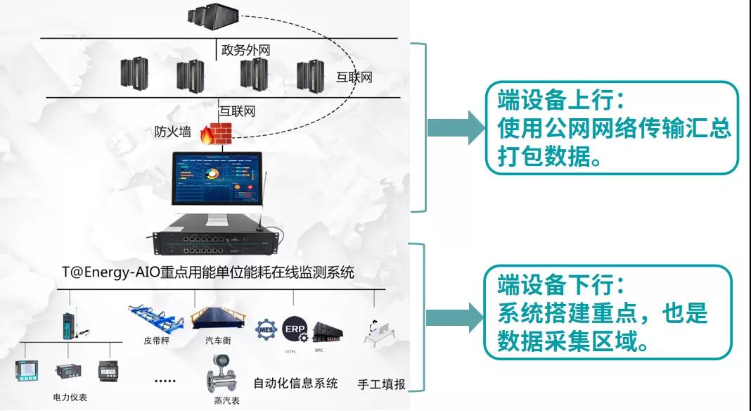 能耗在線監(jiān)測系統(tǒng),可根據(jù)企業(yè)需要定制企業(yè)內(nèi)部的能源管理系統(tǒng),也可以直接通過端設(shè)備系統(tǒng)上傳省市監(jiān)測平臺