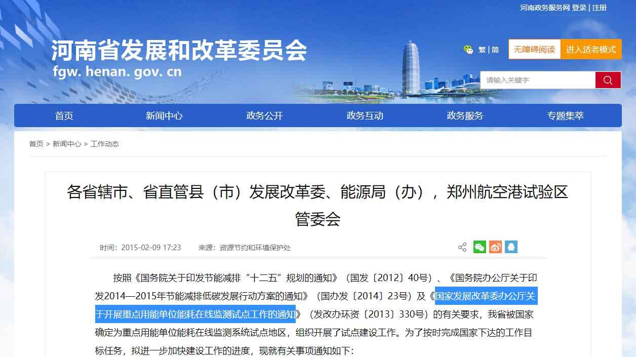 根據(jù)國家發(fā)展改革委、質(zhì)檢總局聯(lián)合印發(fā)的《重點(diǎn)用能單位能耗在線監(jiān)測系統(tǒng)推廣建設(shè)工作方案》及《國家發(fā)展改革委辦公廳關(guān)于開展重點(diǎn)用能單位能耗在線監(jiān)測試點(diǎn)工作的通知》(發(fā)改辦環(huán)資〔2013〕330號)的有關(guān)要求,加快河南省重點(diǎn)用能單位能耗在線監(jiān)測系統(tǒng)平臺建設(shè),推進(jìn)重點(diǎn)用能單位完善能源計量體系、提升能源管理精細(xì)化水平。