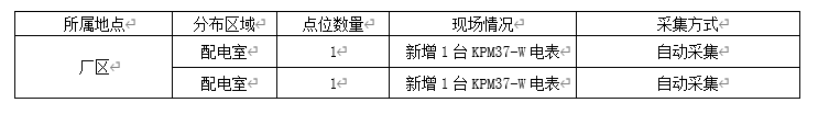 廠區(qū)目前有1個(gè)雙回路進(jìn)線的一級(jí)電力點(diǎn)位,現(xiàn)場(chǎng)無(wú)舊表可以利舊,因此需新增2塊KPM37-W儀表,用于數(shù)據(jù)的采集。